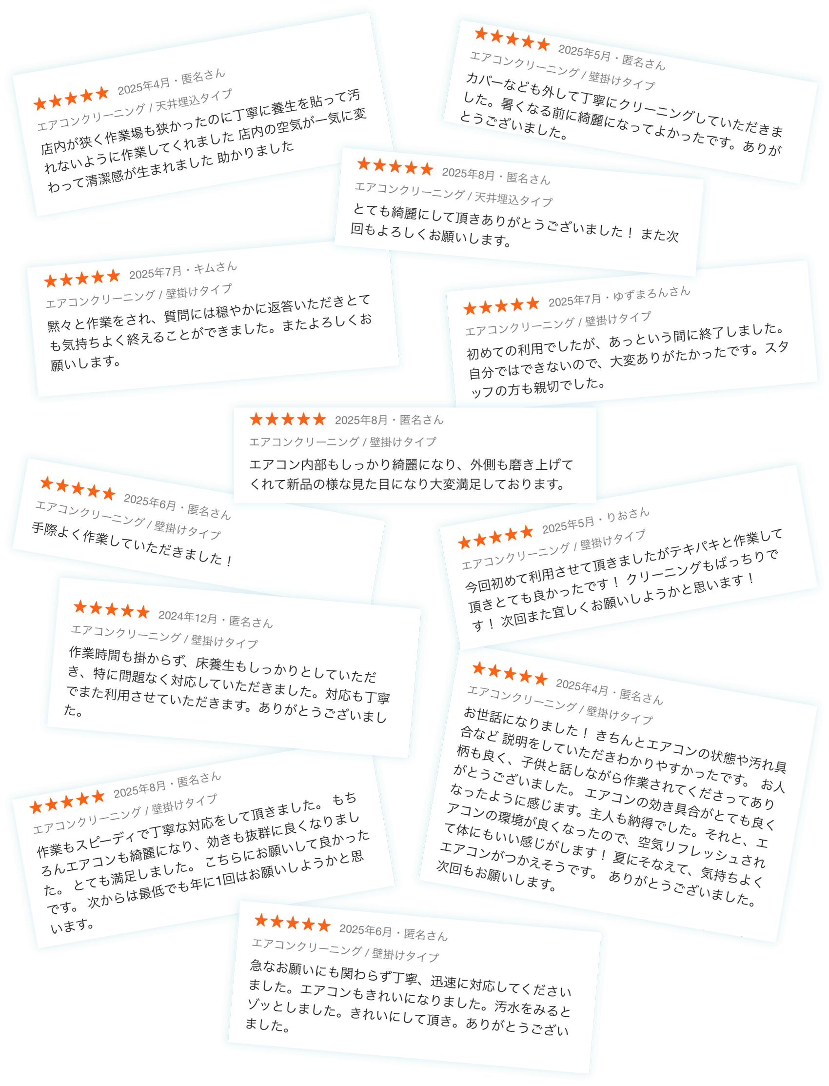 - 大手様の業務用エアコンクリーニングで多数の作業実績で培ったトラブルやお悩みをプロが解決に導きます!